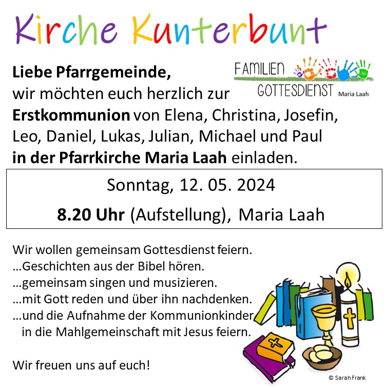 Liebe Kinder, wir möchten euch und eure Familien herzlich zur Erstkommunion
