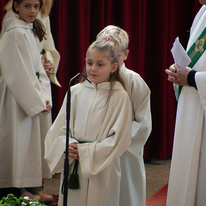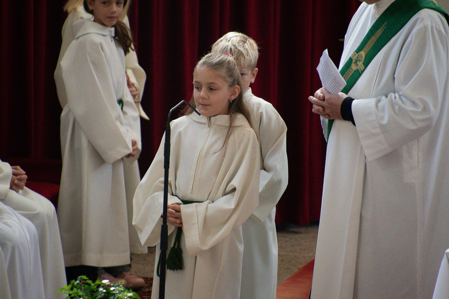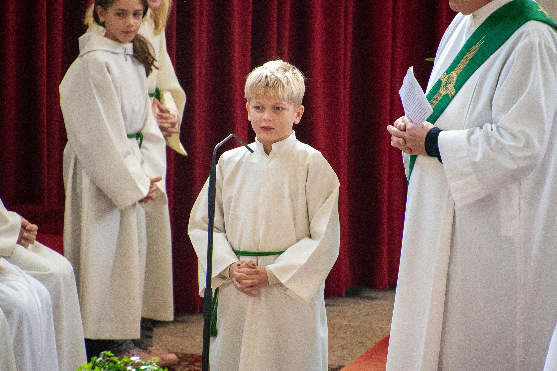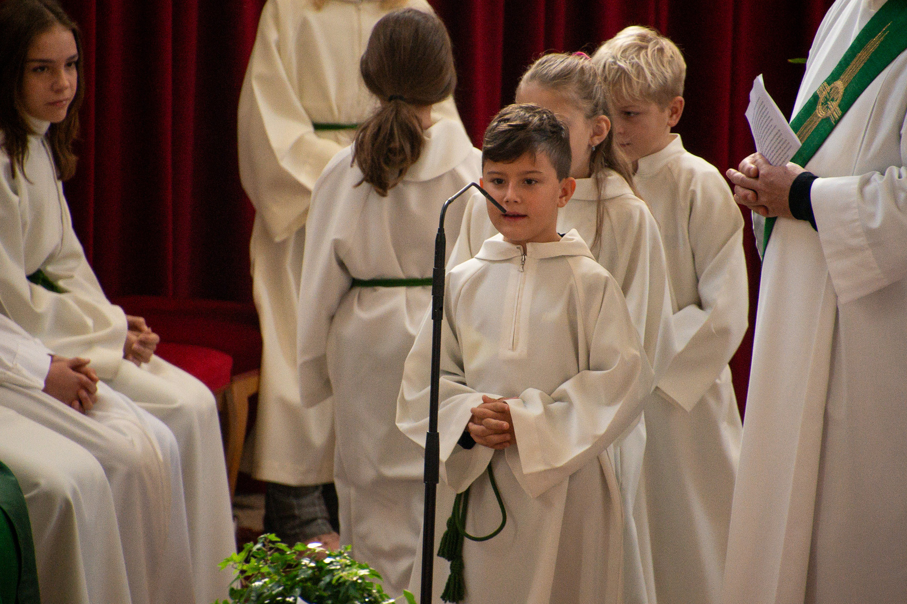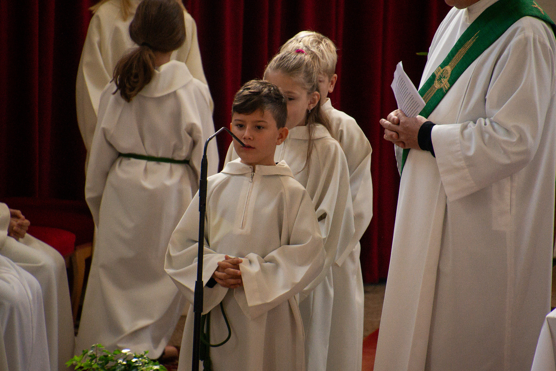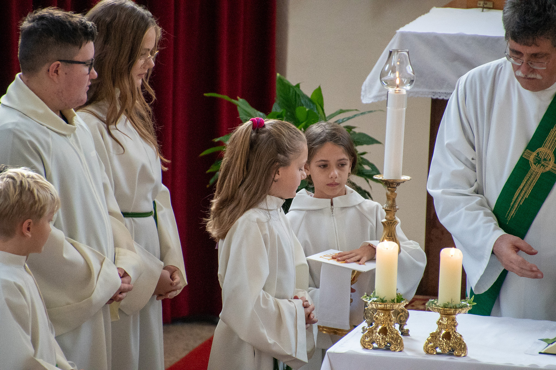 Nach der Erstkommunion werden von unserem Diakon die neuen Ministrant:innen für den Dienst in der Kirche angelernt.