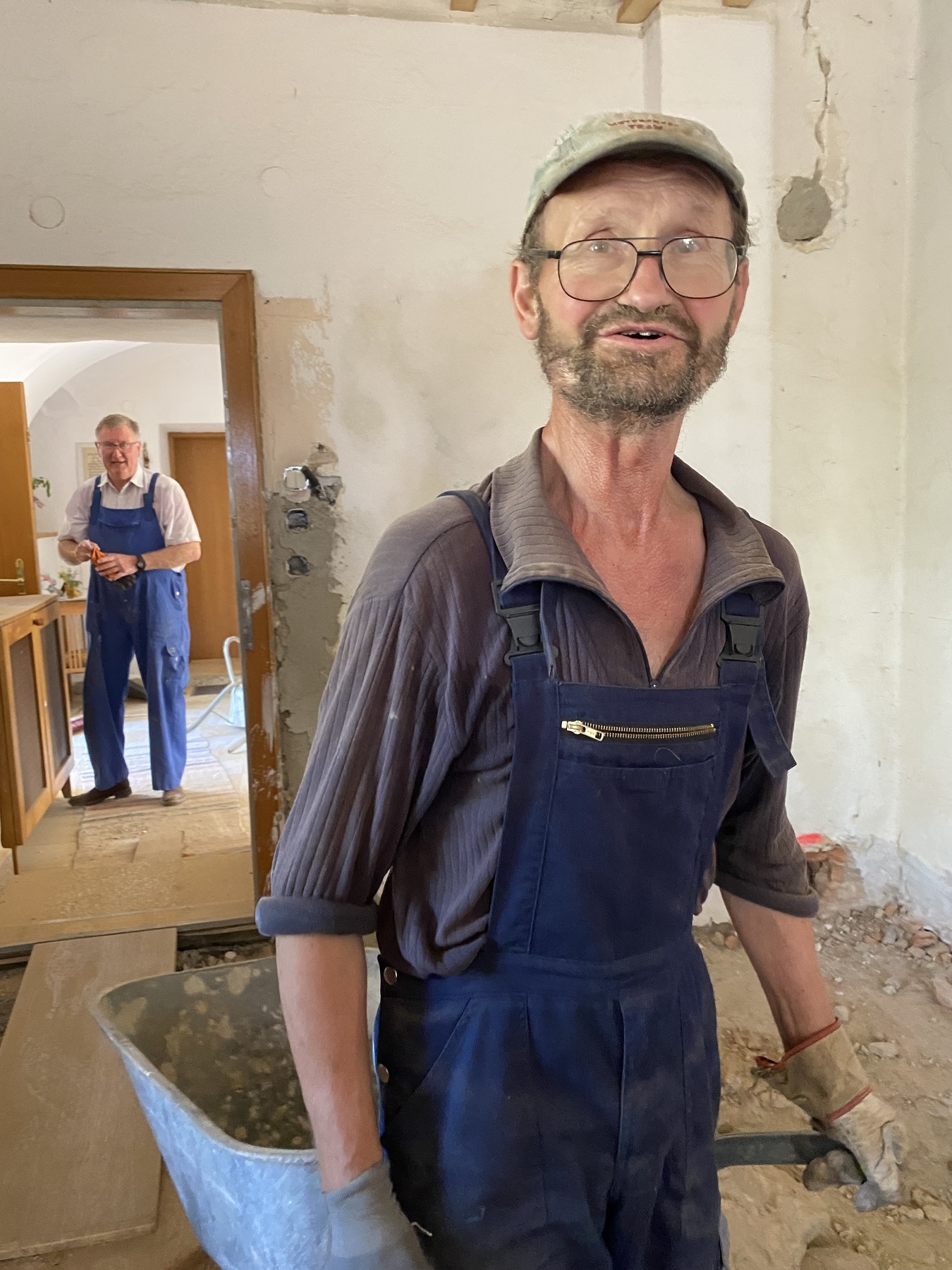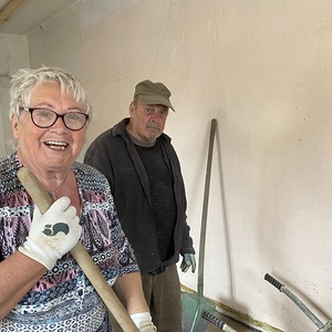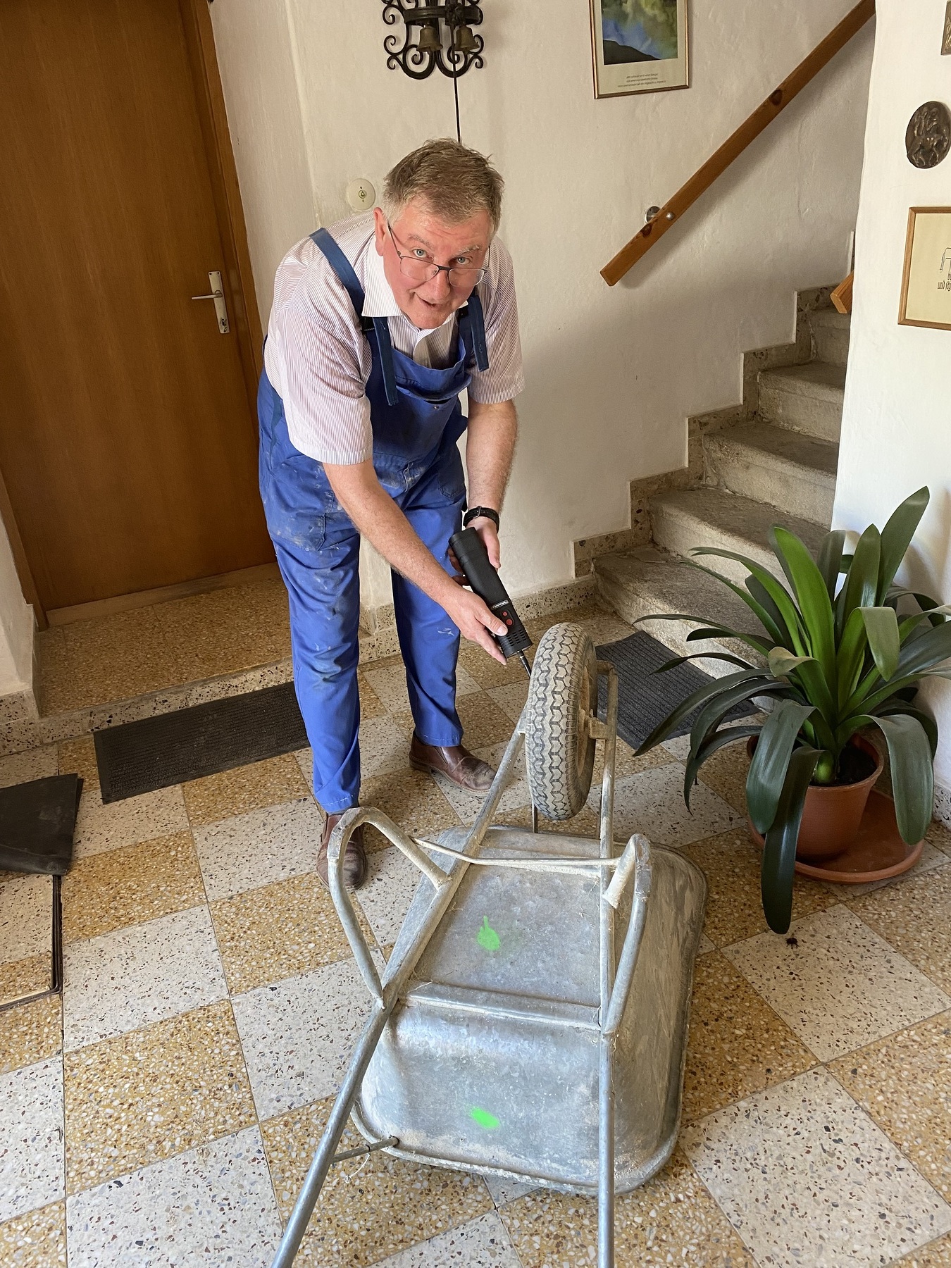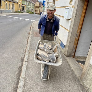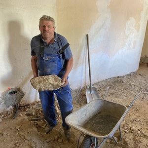Nach langem Kopfzerbrechen wie wir das Loch im Vorraum Boden wieder zu bekommen, wurde das liebevoll und kurzerhand von einem freiwilligen Helfer mit sehr viel Fingerspitzengefühl für die alten Fliesen erledigt.