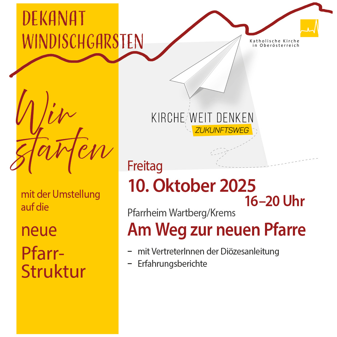 Von September bis November 2025 starten sieben weitere Dekanate als „fünfte Gruppe“ die Vorbereitungsphase für die Umsetzung der Pfarrstrukturreform der Katholischen Kirche in Oberösterreich. Nach Gmunden und Reichersberg fand am 27. September 2025 im Dekanat Grein die Auftaktveranstaltung statt.